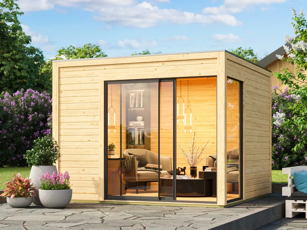 Das naturbelassene Holz sorgt für ein natürliches und zeitloses Aussehen. Außerdem ermöglicht dir das unbehandelte Holz, das Äußere des Gartenhauses ganz nach deinen eigenen Wünschen zu gestalten.