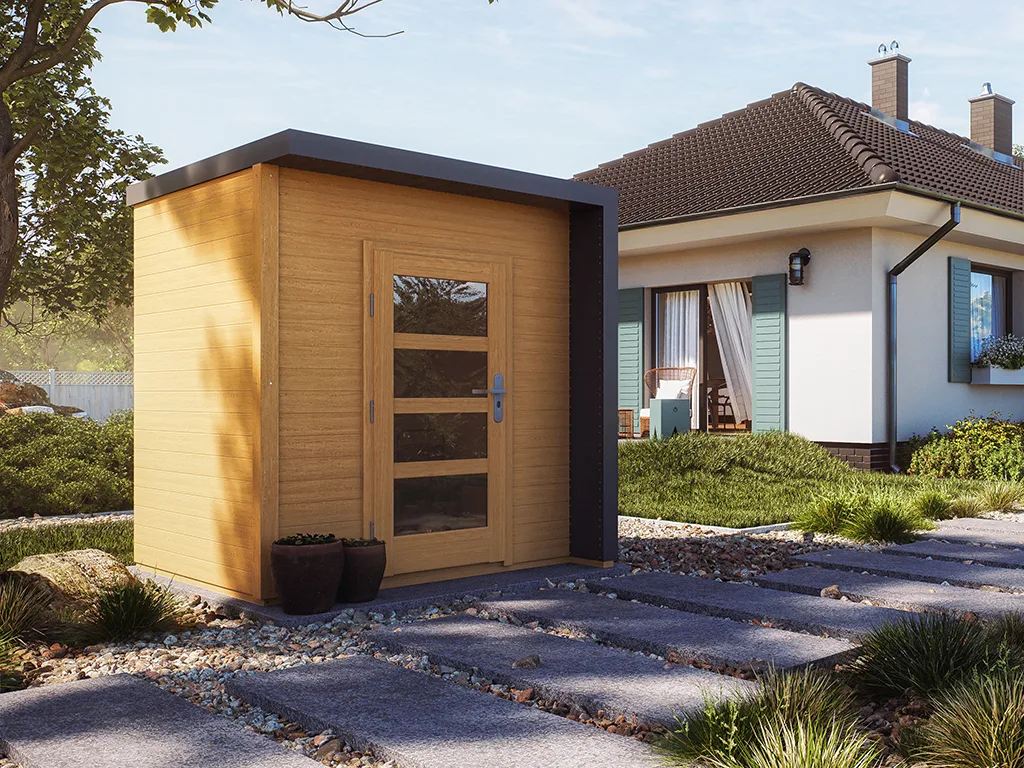 Das naturbelassene Holz sorgt für ein natürliches und zeitloses Aussehen. Außerdem ermöglicht dir das unbehandelte Holz, das Äußere des Gartenhauses ganz nach deinen eigenen Wünschen zu gestalten.