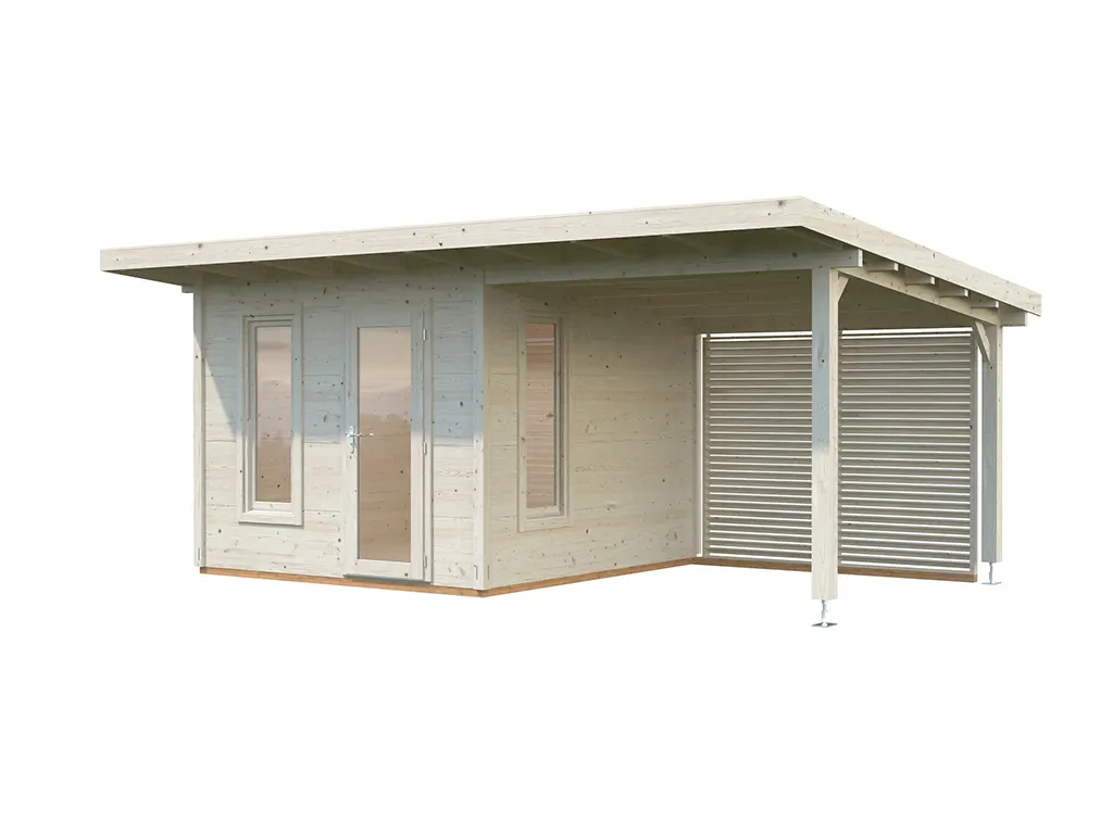 Das Gartenhaus mit Anbaudach und Rückwand ist sehr vielseitig. Der durch das Anbaudach geschaffene zusätzliche Stauraum eignet sich optimal als Lagerplatz für Gartenutensilien oder als Sitzbereich zum gemütlichen Verweilen. Dank Überdachung und integrierter Rückwand sind Geräte und Gartenmöbel optimal vor Wind und Wetter geschützt.