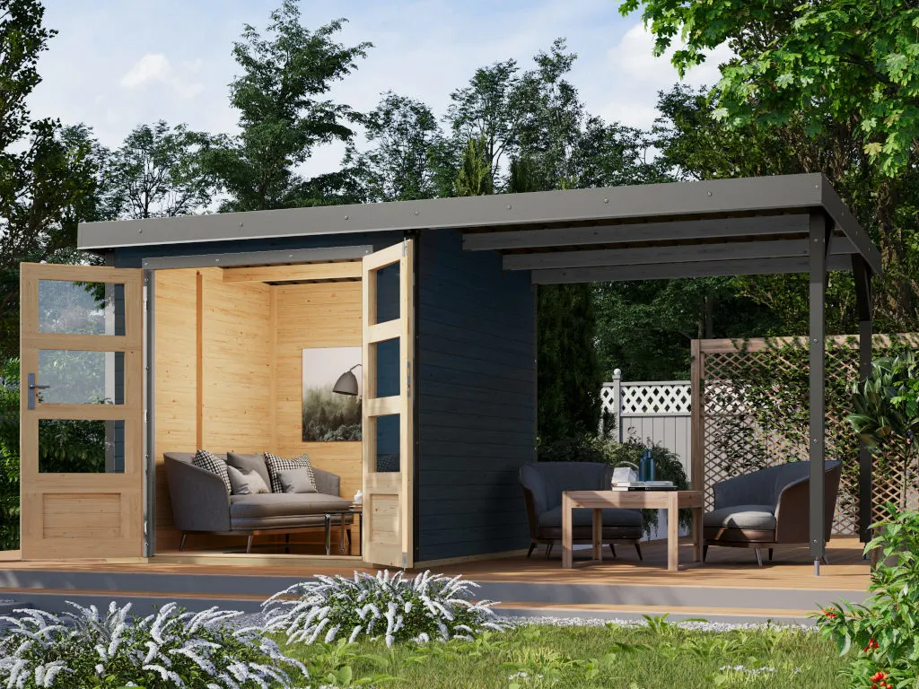 Im Vergleich zu herkömmlichen Holzgartenhäusern sind Hybridhäuser von Karibu erheblich wartungsärmer. Die Stahlecken schützen besonders gut vor Witterung und die Häuser überzeugen durch ihre moderne Optik.