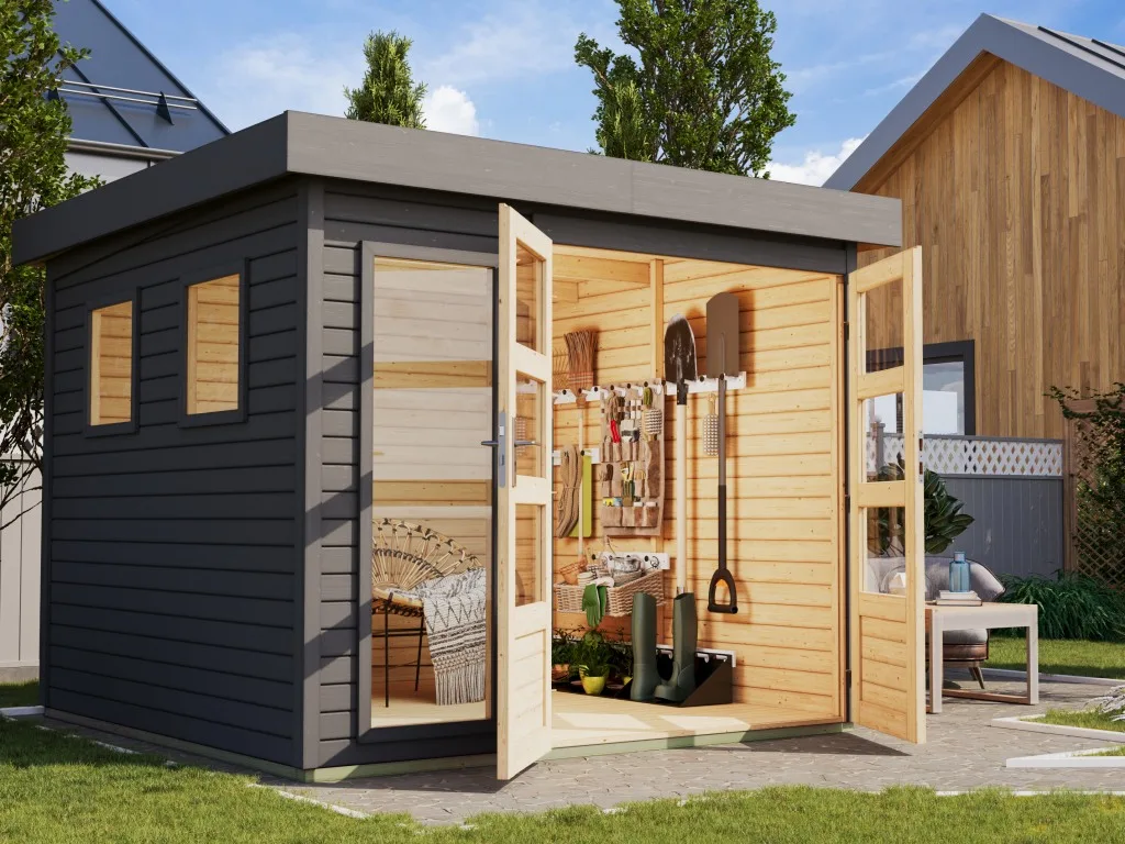 Mit diesem modernen Gartenhaus liegst du voll im Trend. Das Gartenhaus überzeugt mit seinem erfrischenden Design, das für einen echten Hingucker im Garten sorgt. Praktisch und kompakt passt es in jeden modernen Garten.