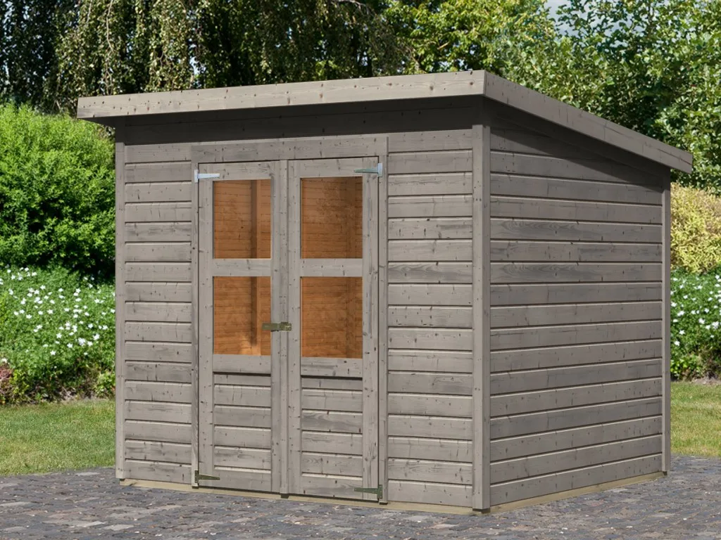 Ein modernes Pultdach verleiht deinem Gartenhaus eine stilvolle, elegante Optik. Durch nur eine geneigte Dachfläche ist die Nutzungsfläche im Inneren des Gartenhauses deutlich weniger eingeschränkt und der Verlust an Nutzraum gering. Zudem lässt die Neigungsseite des Pultdaches das Regenwasser gut abfließen und es ist die Montage von nur einer Regenrinne nötig.