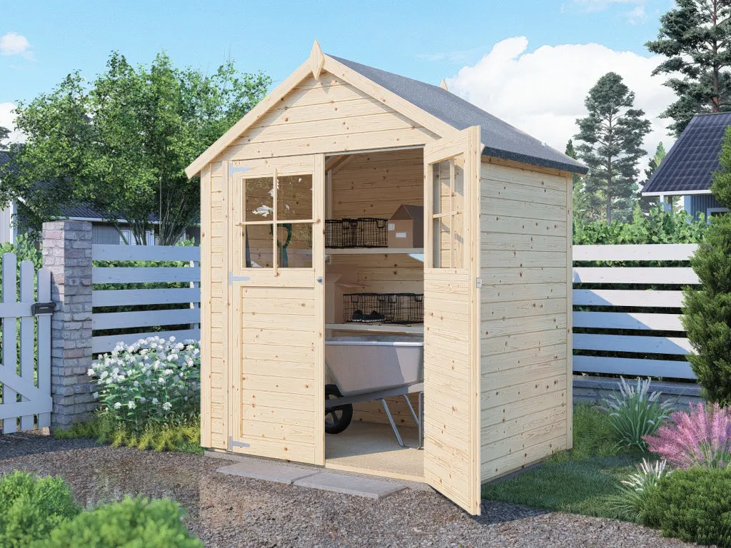 Mit seiner Wandstärke von 19 mm ist das Gartenhaus ideal als Stellplatz für Fahrräder, Gartengeräte und -utensilien geeignet. Leicht zu montieren, reicht die einfache Ausführung als Unterstand oder Abstellraum vollkommen aus.