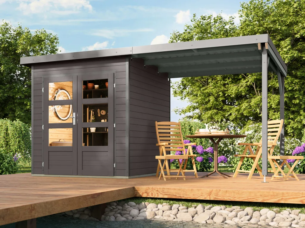 | Wandstärke (mm) Die Wandstärke bezeichnet die Dicke der Wand. Je dicker die Wand, desto mehr Stabilität und Isolation bietet das Gartenhaus. | 28 mm |