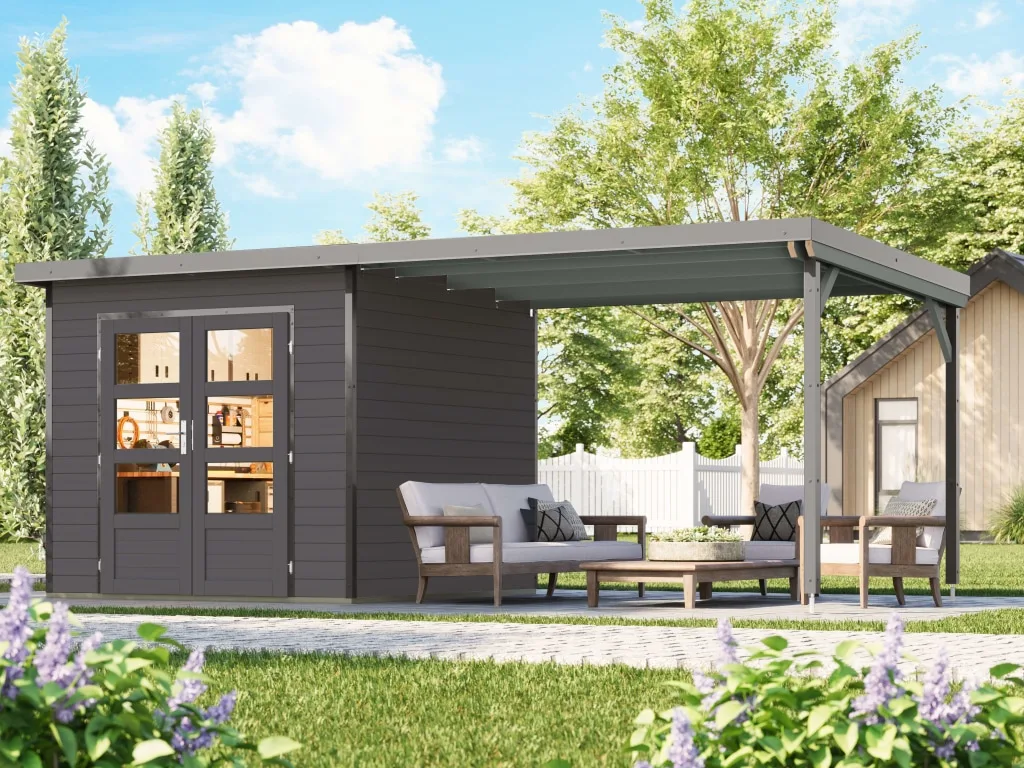 | Wandstärke (mm) Die Wandstärke bezeichnet die Dicke der Wand. Je dicker die Wand, desto mehr Stabilität und Isolation bietet das Gartenhaus. | 28 mm |