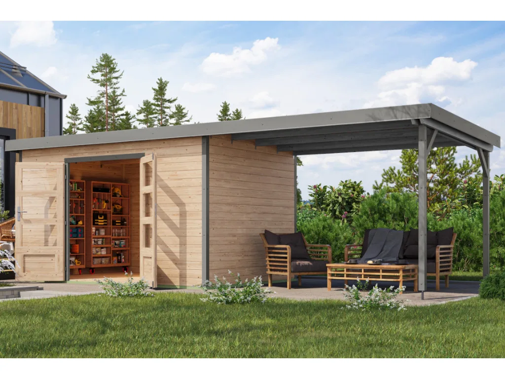 Im Vergleich zu herkömmlichen Holzgartenhäusern sind Hybridhäuser von Karibu erheblich wartungsärmer. Die Stahlecken schützen besonders gut vor Witterung und die Häuser überzeugen durch ihre moderne Optik.