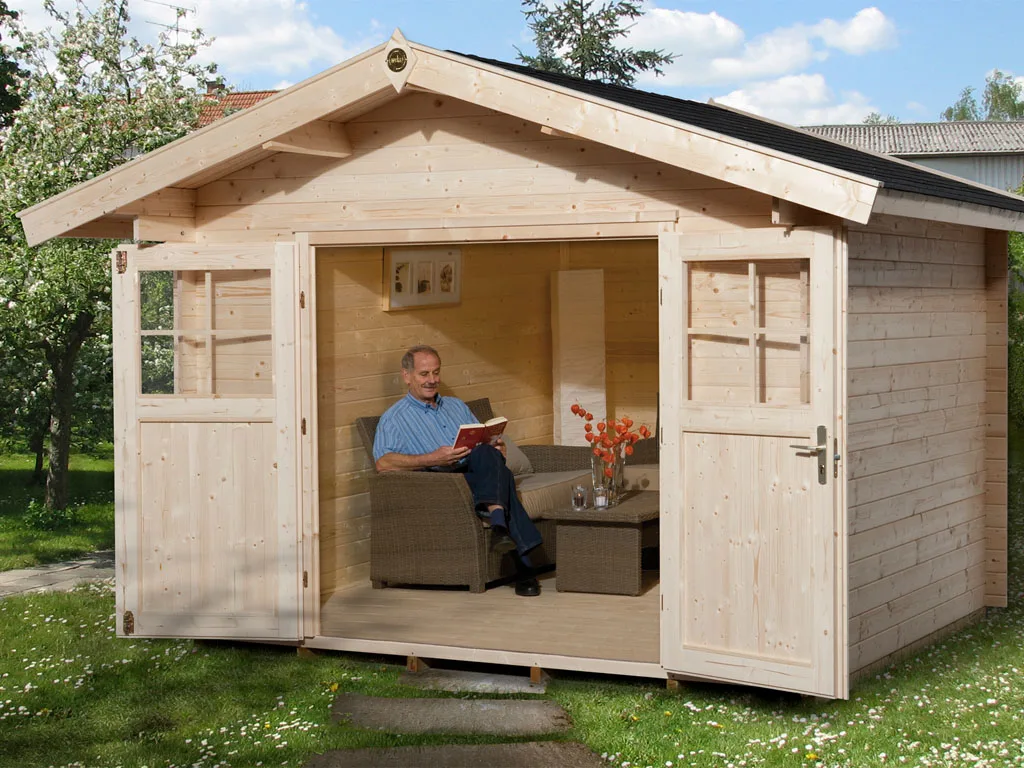 Das naturbelassene Holz sorgt für ein natürliches und zeitloses Aussehen. Außerdem ermöglicht Dir das unbehandelte Holz, das Äußere des Gartenhauses ganz nach Deinen eigenen Wünschen zu gestalten.