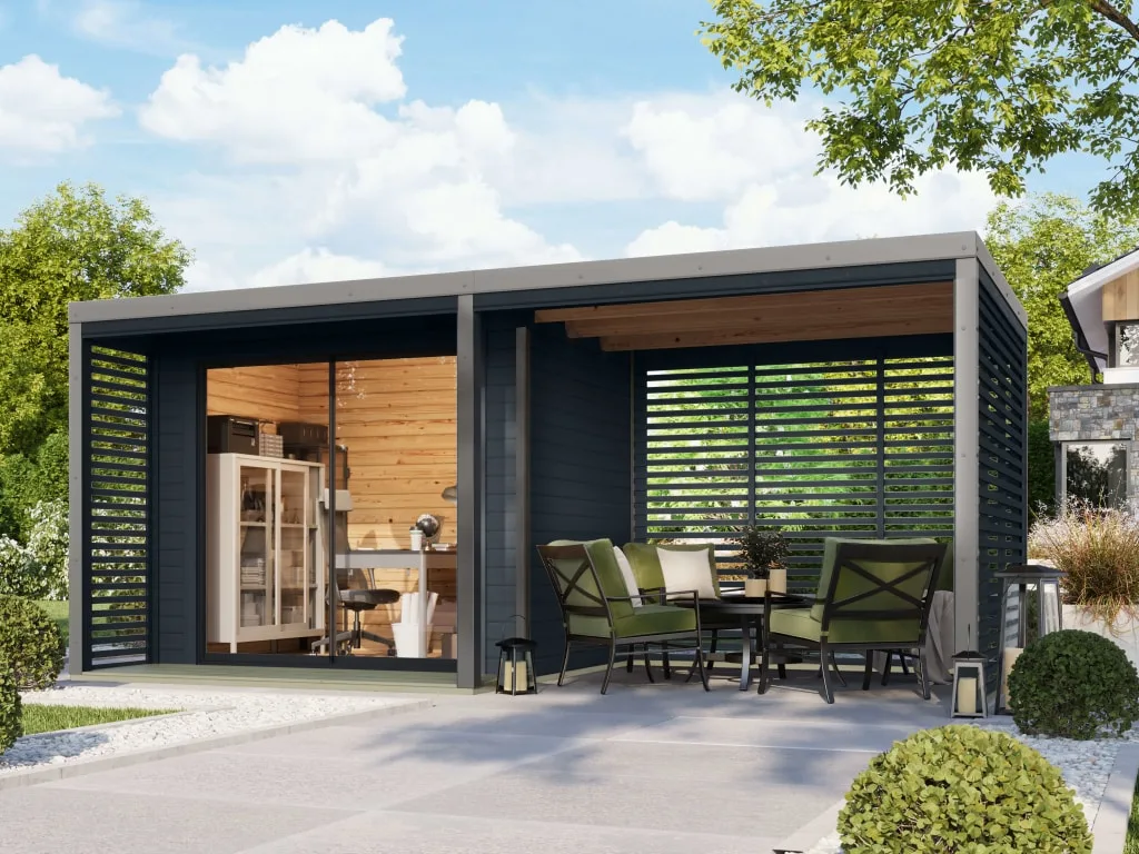 Gartenhaus Saturn 1 38 mm SET anthrazit / graualuminium mit Anbau