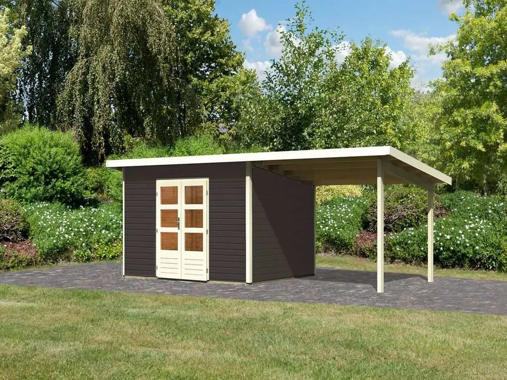 KARIBU Gartenhaus SET Northeim 4 - Terragrau, inkl. 3,3 m Anbaudach