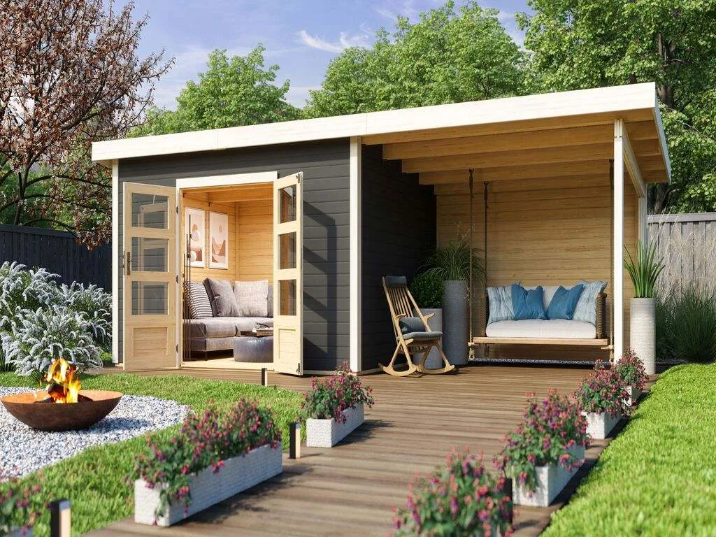 Ein modernes Pultdach verleiht deinem Gartenhaus eine stilvolle, elegante Optik. Durch nur eine geneigte Dachfläche ist die Nutzungsfläche im Inneren des Gartenhauses deutlich weniger eingeschränkt und der Verlust an Nutzraum gering. Zudem lässt die Neigungsseite des Pultdaches das Regenwasser gut abfließen und es ist die Montage von nur einer Regenrinne nötig.