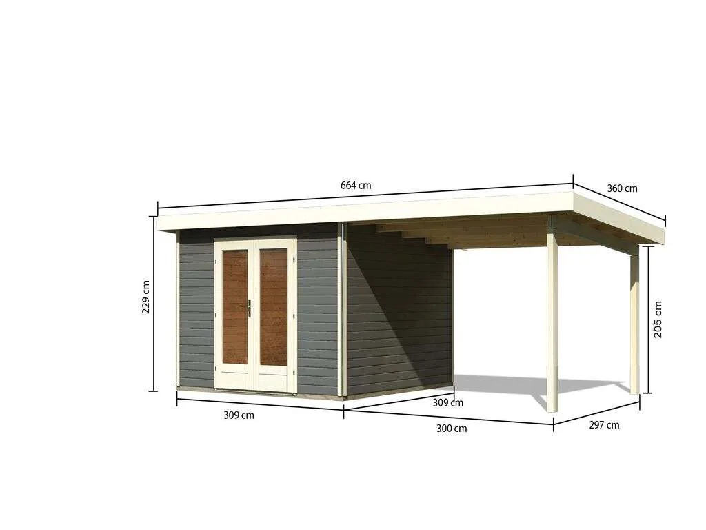 Gartenhaus SET Radeburg 1 40 mm terragrau inkl. 3,3 m Anbaudach