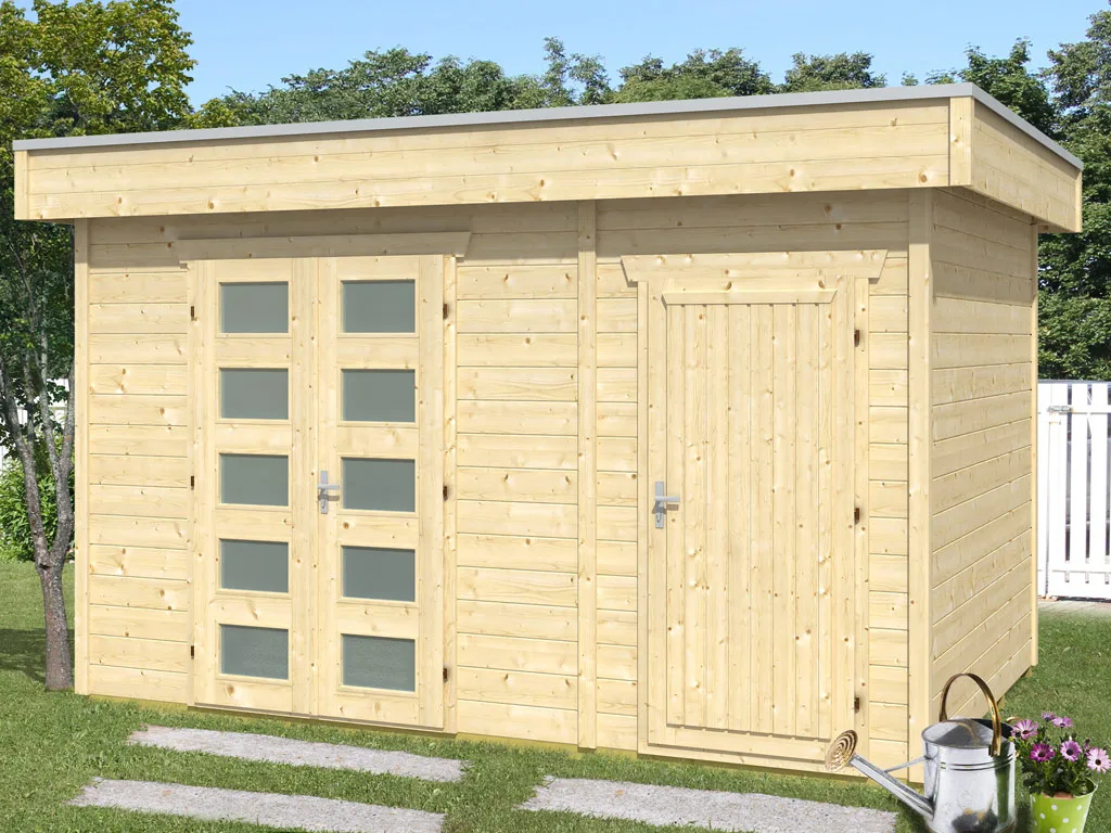 Dieses 2-Raum-Gartenhaus bietet viel Platz für eine multifunktionale Nutzung. Die durch eine Trennwand geschaffenen zwei Räume mit separaten Eingängen ermöglichen Dir, dieses Gartenhaus sowohl als gemütlichen Rückzugsort als auch als Stauraum für Gartengeräte zu nutzen.