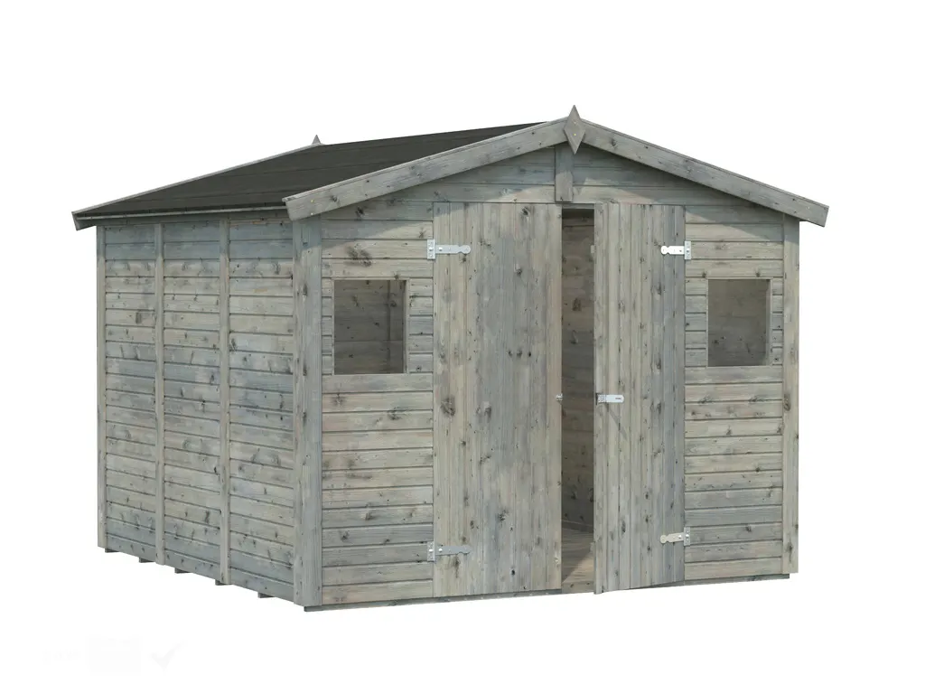 B x T x H: 273 x 280 x 220 cm, 2 Fenster + Doppelflügeltür, grau tauchimprägniert