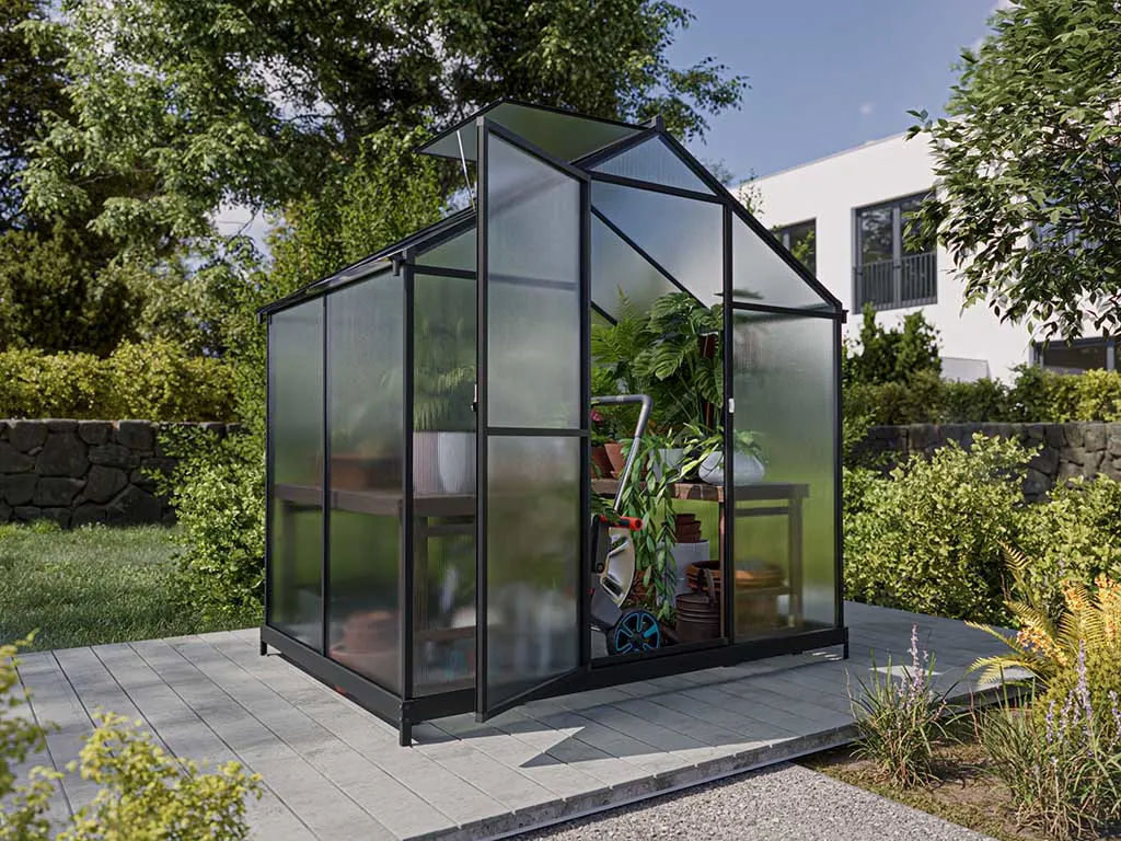 Du hast einen eher kleineren Garten und möchtest trotzdem im geschützten Raum des Gewächshauses Lebensmittel und Pflanzen anbauen? Dann ist Viktoria das ideale Modell für dich! Mit einer Größe von 182 x 122 x 188,3 cm (B x T x H) bietet es dir ausreichend Platz für die An- und Aufzucht sowie die Überwinterung verschiedenster Pflanzen, ohne dabei selbst zu viel Platz im Garten einzunehmen.