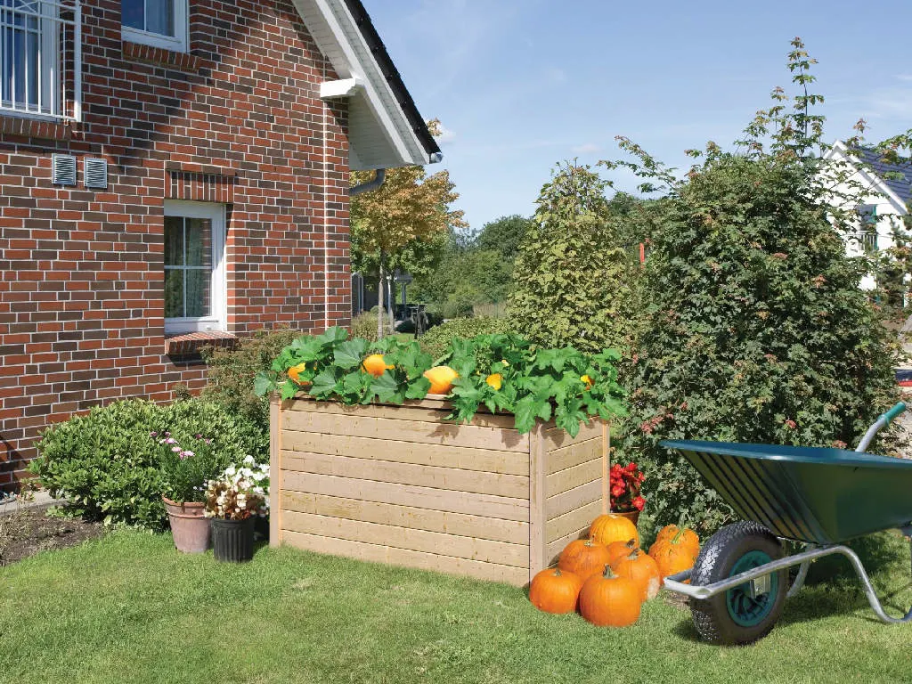 Das Hochbeet besteht aus robustem Fichtenholz in Natur. Fichte ist besonders langlebig und stabil – das ideale Holz für den Außenbereich. Durch die natürliche Farbe fügt sich das Beet harmonisch in das Erscheinungsbild deines Gartens ein.