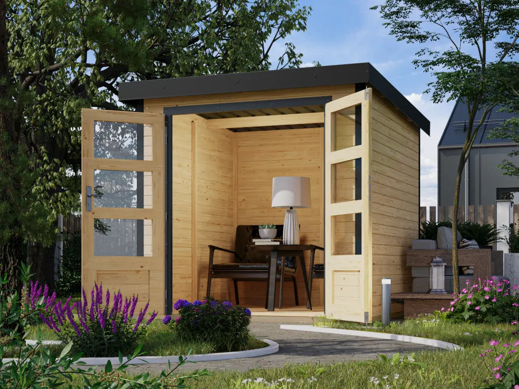 Das naturbelassene Holz sorgt für ein natürliches und zeitloses Aussehen. Außerdem ermöglicht dir das unbehandelte Holz, das Äußere des Gartenhauses ganz nach deinen eigenen Wünschen zu gestalten.