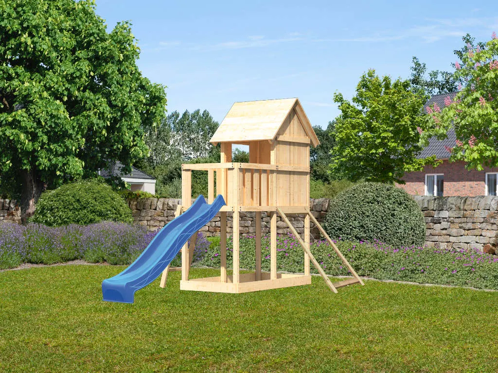 Das Spielhaus ist aus Holz gefertigt. Der Naturstoff ist das perfekte Material für Kinderspielgeräte – strapazierfähig und beständig. Für die Herstellung wurde erstklassiges Fichtenholz verwendet. Fichte ist besonders langlebig und robust, was für die notwendige Stabilität sorgt.
