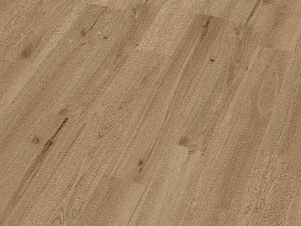 Das attraktive Eichenholzdekor fühlt sich in nahezu jedem modernen Einrichtungsstil zu Hause. Landhausdielen sind perfekt für alle, die den authentischen Holzcharakter ihres Bodens hervorheben möchten – für ein rustikales Flair. Die 4-seitig umlaufende V-Fuge betont die Dielenoptik. Aufgrund der strapazierfähigen Lackversiegelung ist die Oberfläche hervorragend gegen Schmutz, Feuchtigkeit und Kratzer gewappnet.