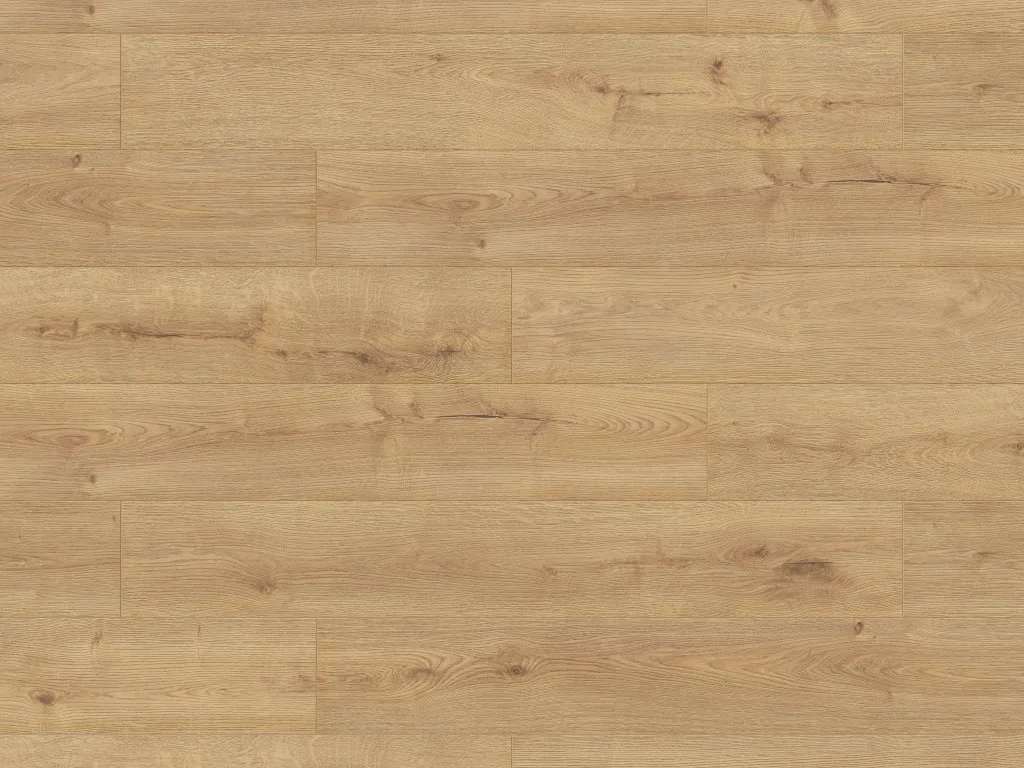 Das natürliche Landhausdielendesign dieses Laminatbodens besitzt mit seiner Ein-Stab-Optik einen natürlichen und rustikalen Look, der in jedem Raum für Gemütlichkeit sorgt. Die an vier Seiten umlaufende Fase hebt den Fliesencharakter besonders hervor.