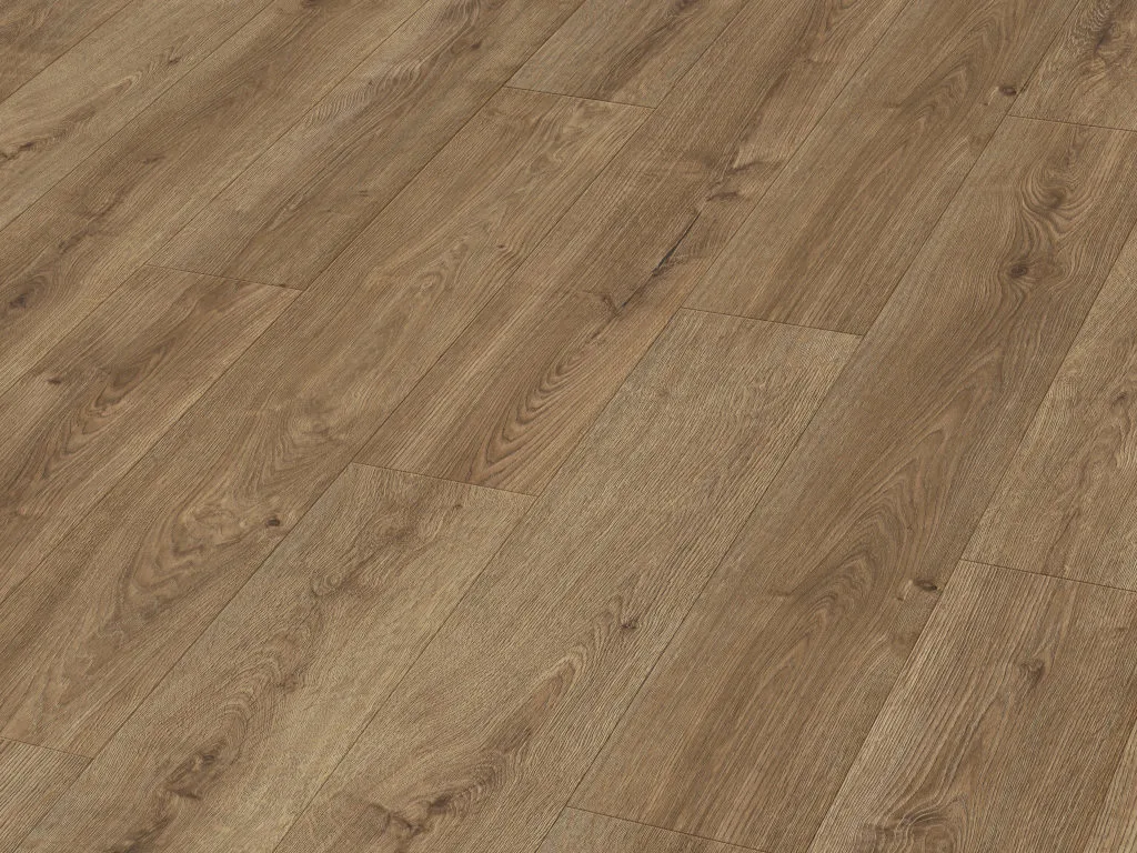 Dank seiner Resistenz gegen Nässe aufgrund der wasserresistenten Trägerplatte kann dieser Laminatboden auch in Feuchträumen wie Bad oder Küche verlegt werden. Die Verlegung über einer Warmwasserfußbodenheizung ist kein Problem.