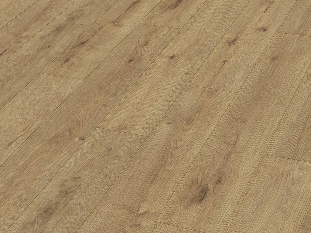 Die markante Eichenholzmaserung des Dekors vermittelt Behaglichkeit und natürliche Lebendigkeit. Landhausdielen wirken mit ihrer 1-Stab-Optik elegant, rustikal und voller Charakter. Ein Must-have für Holz-Fans! Die 4-seitig umlaufende V-Fuge der Diele betont den rustikalen Landhauscharakter. Dank modernster Herstellungsverfahren werden Musterwiederholungen in der Oberflächenstruktur weitestgehend vermieden, sodass ein natürlich authentischer Holzlook entsteht.