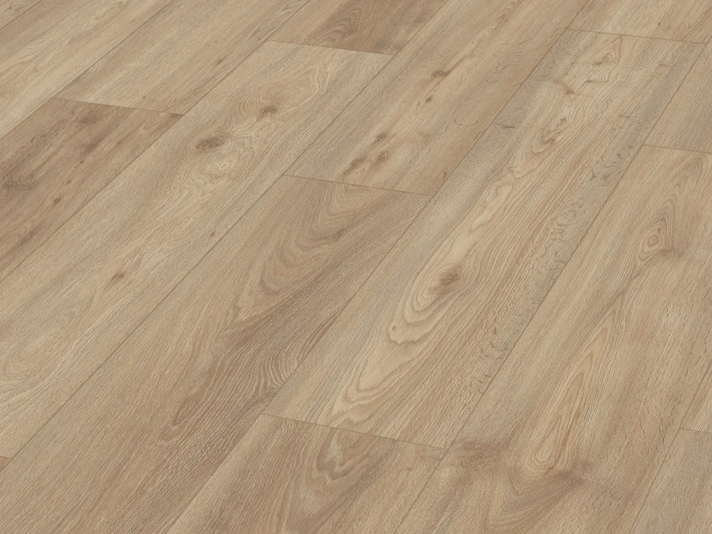 Das Dekor mit typischer Eichenholzmaserung charakterisiert perfekt den Stil der rustikalen Moderne. Landhausdielen sind perfekt für alle, die den authentischen Holzcharakter ihres Bodens hervorheben möchten – für ein rustikales Flair. Dank modernster Prägetechnologien ist die strukturierte Oberfläche dieses Bodens bis ins kleinste Detail der Beschaffenheit von Holz nachempfunden.