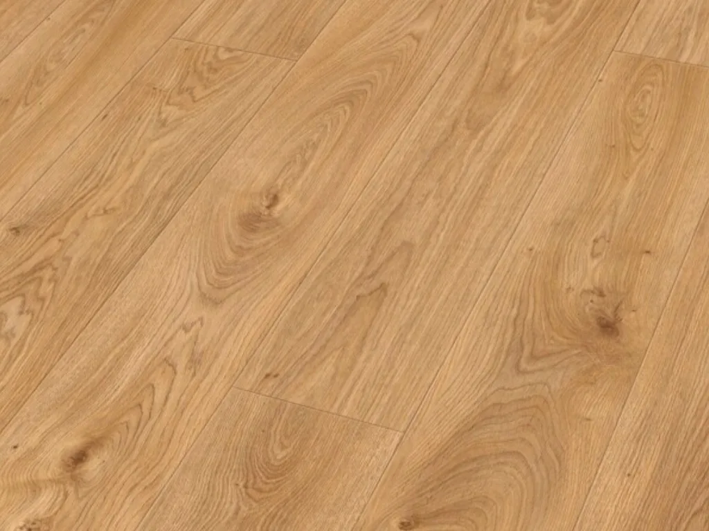 Die typische Eichenholzmaserung des Dekors strahlt zeitlose Klasse und behagliche Wärme aus. Landhausdielen besitzen mit ihrer Ein-Stab-Optik einen natürlichen und rustikalen Look, der jeden Raum gemütlich wirken lässt. Die 4-seitig umlaufende V-Fuge der Diele betont den rustikalen Landhauscharakter.