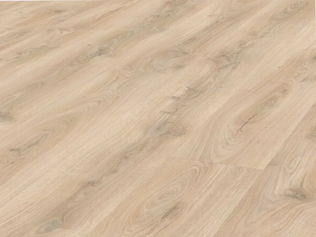Die typische Eichenholzmaserung des Dekors strahlt zeitlose Klasse und behagliche Wärme aus. Die hochwertige Landhausdielenoptik fügt sich optimal in jeden Einrichtungsstil ein. Durch das Ein-Stab-Design wirkt das Laminat harmonisch und elegant. Bei diesem Boden entsteht dank der feinen und realistisch wirkenden Porenstruktur eine vielfältige Oberflächendynamik.