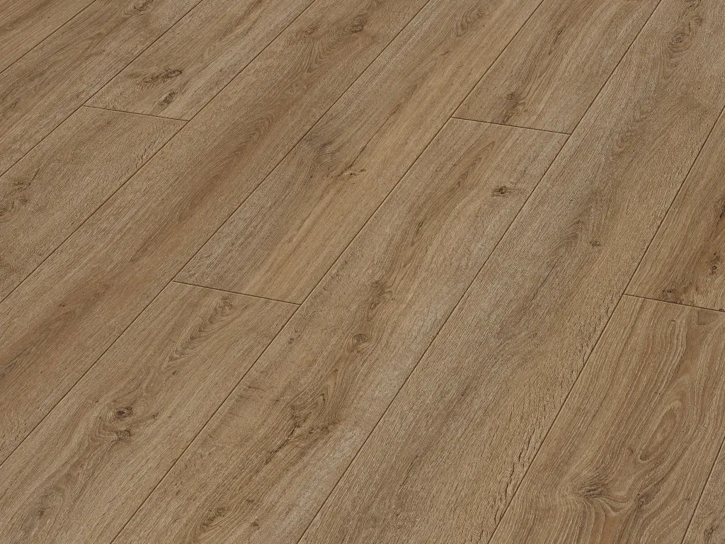 Das Dekor in authentischer Eichenholzoptik vermittelt fühlbare Wärme und Behaglichkeit. Landhausdielen besitzen mit ihrer Ein-Stab-Optik einen natürlichen und rustikalen Look, der jeden Raum gemütlich wirken lässt. Die 4-seitig umlaufende V-Fuge verstärkt den Charakter des Bodens und gibt ihm eine besondere Struktur.
