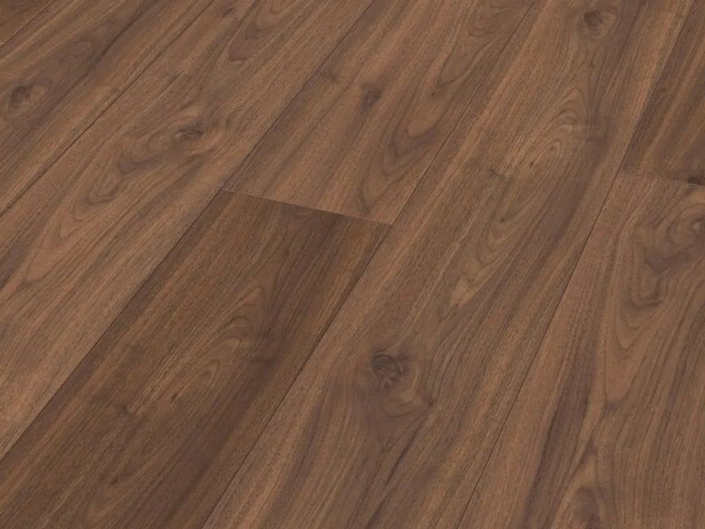 Die edle Nussbaumoptik wertet jeden Raum auf. Landhausdielen sind perfekt für alle, die den authentischen Holzcharakter ihres Bodens hervorheben möchten – für ein rustikales Flair. Die 4-seitig umlaufende V-Fuge verstärkt den Charakter des Bodens und gibt ihm eine besondere Struktur. Die authentisch wirkende Oberfläche ist durch eine feine Porenstruktur gekennzeichnet, die man so auch bei edlen Echtholzböden findet.