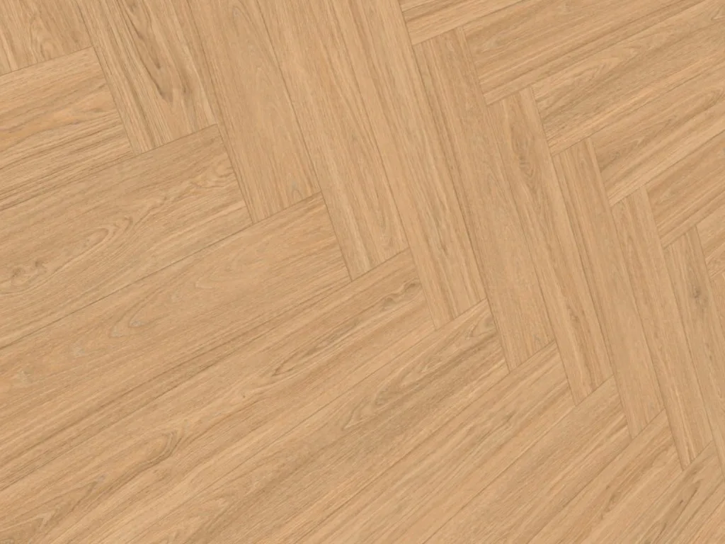Die typische Eichenholzmaserung des Dekors strahlt zeitlose Klasse und behagliche Wärme aus. Das Fischgrätdesign dieses Bodens ist nicht umsonst so populär – aufgrund seiner außergewöhnlichen, eleganten Dielenstruktur erzeugt es in jedem Raum ein elegantes und luxuriöses Ambiente. Bei diesem Boden entsteht dank der feinen und realistisch wirkenden Porenstruktur eine vielfältige Oberflächendynamik.