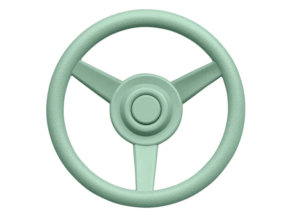 Das Lenkrad in Pastellgrün besteht aus robustem Kunststoff und hat einen Durchmesser von 30 cm. Es kann flexibel an Kinderspielgeräten oder Spielhäusern befestigt werden und regt Kinder zu kreativem Rollenspiel an.