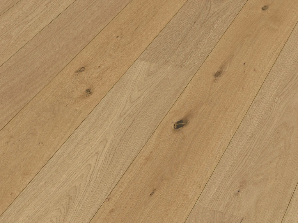 Typisch für das verwendete Eichenholz dieser Diele sind die Jahresringe sowie kleinere oder größere Astfüllungen, die für einen einzigartigen, individuellen Look in Deinem Heim sorgen. Aufgrund seiner Härte und schönen Maserung ist der Eichenholzboden der ultimative Lieblingsboden der Europäer.