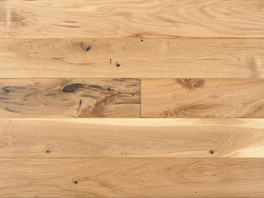 Die Pinhole Sortierung besticht durch ein sehr lebhaftes Charakteristikum und unterstreicht die Natürlichkeit des Bodens. Individuelle Struktur und ausdrucksstarke Maserung, welche durch kleine schwarz-verspachtelte Risse und Astungen seine lebhafte Sortierung bekommt. Die winzigen Löcher entstehen durch Frischholzinsekten, welche durch den Trocknungsprozess vollständig absterben und sind je nach Holzart typisch. Die verbliebenen Löcher stellen kein Qualitätsmangel dar und geben dabei dem Boden einen sehr rustikalen Charme.