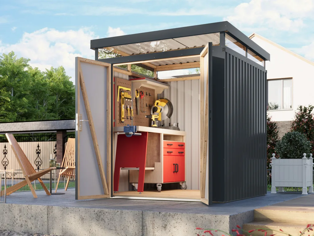 Klein, aber fein – dieses Gerätehaus bietet ausreichend Stauraum, ohne dabei viel Platz im Garten einzunehmen. So kannst du deine Geräte ganz leicht witterungsgeschützt und diebstahlsicher verstauen. Das Häuschen besteht aus verzinktem Metall und ist dadurch besonders langlebig und robust.