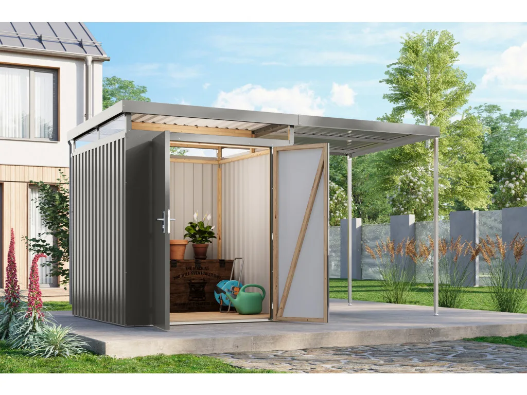 Metall-Gerätehaus Aurum 2 graualuminium im Set mit Anbau