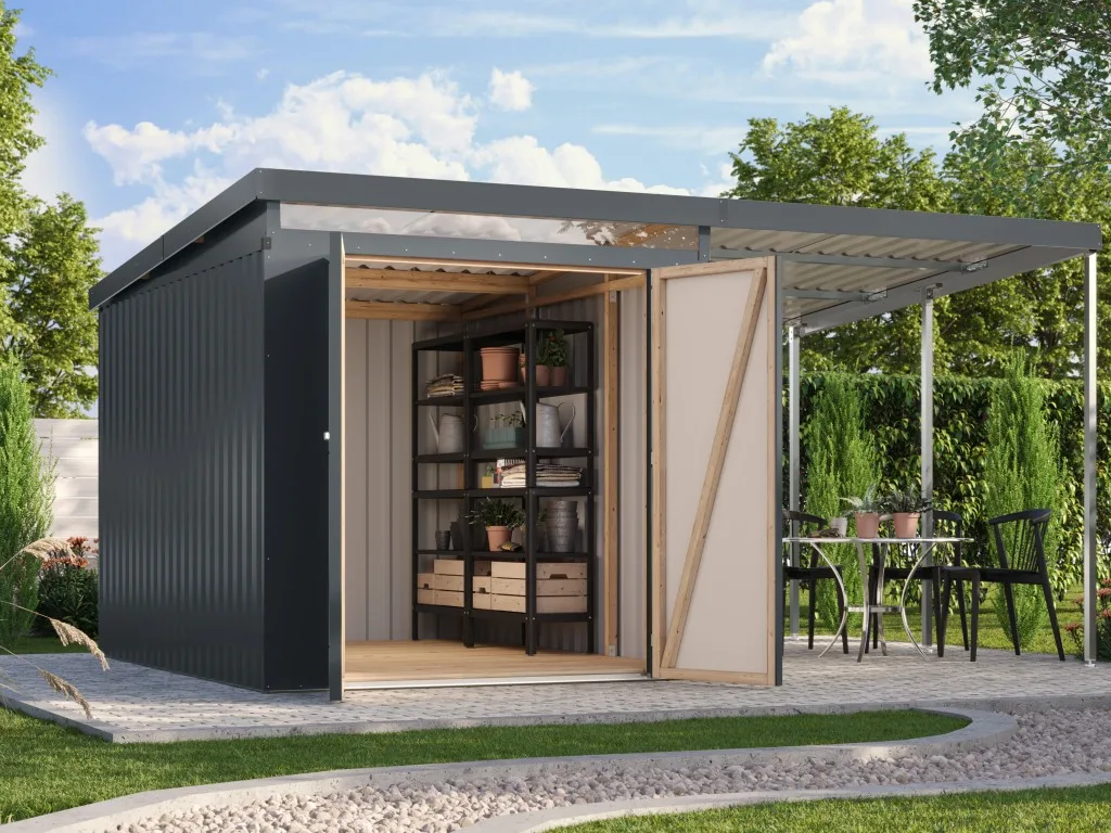 Metall-Gerätehaus Iridium 2,5 SET anthrazit mit Anbau