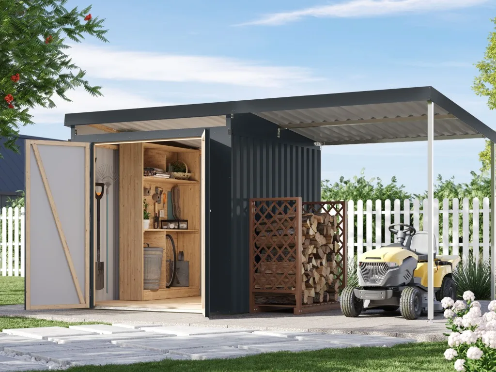 Metall-Gerätehaus Iridium 2 SET anthrazit mit Anbau