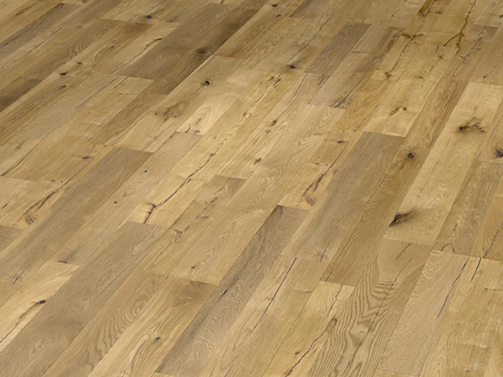 Typisch für das verwendete Eichenholz dieser Diele sind die Jahresringe sowie kleinere oder größere Astfüllungen, die für einen einzigartigen, individuellen Look in Deinem Heim sorgen. Aufgrund seiner Härte und schönen Maserung ist der Eichenholzboden der ultimative Lieblingsboden der Europäer.