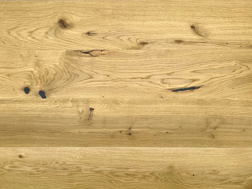 Das Holz der Eiche verleiht diesen Dielen einen urwüchsigen Charakter und schenkt allen Räumen stilvolle Wärme und Behaglichkeit. Neben seiner luxuriösen Optik ist Eichenholz relativ hart, aber dennoch trittelastisch.