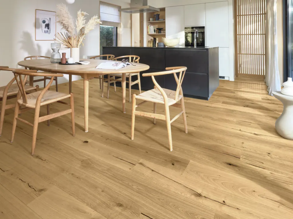 Ein Parkettboden ist nicht nur langlebig und strapazierfähig, er lässt sich auch problemlos reinigen und verleiht deinem Zuhause eine natürliche Wohlfühlatmosphäre. Durch die feuchtigkeitsregulierende Wirkung beeinflusst ein Holzboden außerdem das Raumklima positiv.