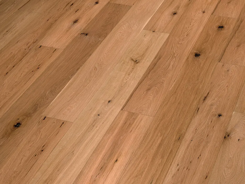 Dieser Eichenboden begeistert durch seine klassische und elegante Optik und integriert sich wunderbar in moderne wie traditionelle Einrichtungsstile. Dabei beeindrucken diese Luxusdielen nicht nur optisch. Ein Boden aus Eiche passt sich trockener Luft und höherer Luftfeuchte flexibel an.