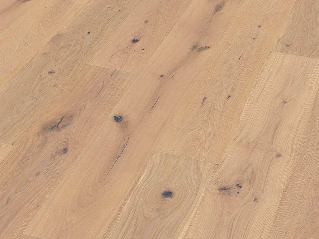 Die Optik des Bodens ist authentisch und abwechslungsreich - einfach zum Wohlfühlen. Der robuste Look des Eichenholzes wird durch seine technischen Vorteile bestätigt: es ist sehr hart, ökologisch, langlebig und zäh - ein Holz für die Ewigkeit.