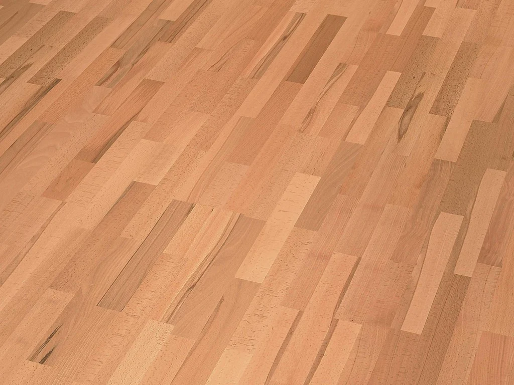 Die Dielen haben eine Breite von 20,4 cm, eine Länge von 220 cm und sind 14 mm stark. Mithilfe der Klickverbindung "Drop Down Klick-System" kann der Boden problemlos schwimmend verlegt werden. 3-Schicht-Parkett besteht aus einer Edelholz-Nutzschicht, einer Mittellage aus MDF, HDF oder Holz (z. B. Pappel oder Fichte) sowie einem Gegenzug, der dem Verziehen des arbeitenden Holzes entgegenwirkt. Es besitzt einen symmetrischen Aufbau und damit optimale Dimensionsstabilität bei zum Beispiel höherer Luftfeuchtigkeit. Die 4 mm starke Nutzschicht macht den Bodenbelag besonders pflegeleicht und robust. Für die Verlegung über einer Warmwasserfußbodenheizung hat der Hersteller den Bodenbelag nicht freigegeben.