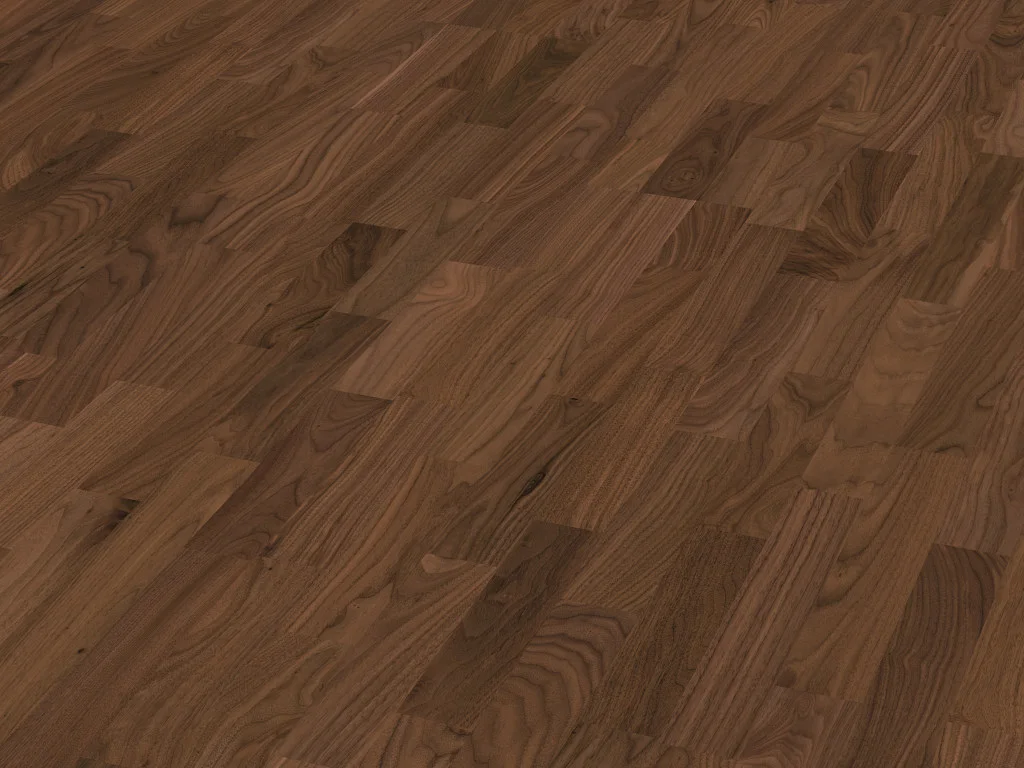 Charakteristisch bei diesem Nussbaum -Boden sind die exklusiven Dielen, die mit ihrer beachtlichen Länge von 2400 mm die ungebrochene Dynamik echten Holzes ausstrahlen.