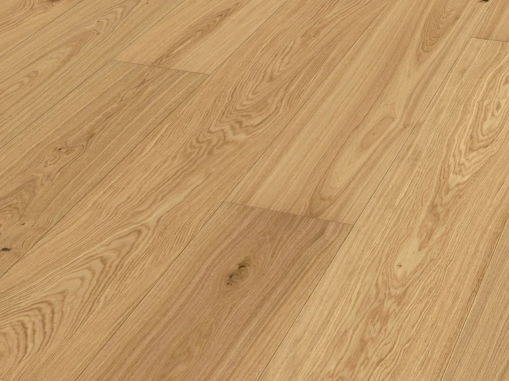 Typisch für das verwendete Eichenholz dieser Diele sind die Jahresringe sowie kleinere oder größere Astfüllungen, die für einen einzigartigen, individuellen Look in Deinem Heim sorgen. Aufgrund seiner Härte und schönen Maserung ist der Eichenholzboden der ultimative Lieblingsboden der Europäer.