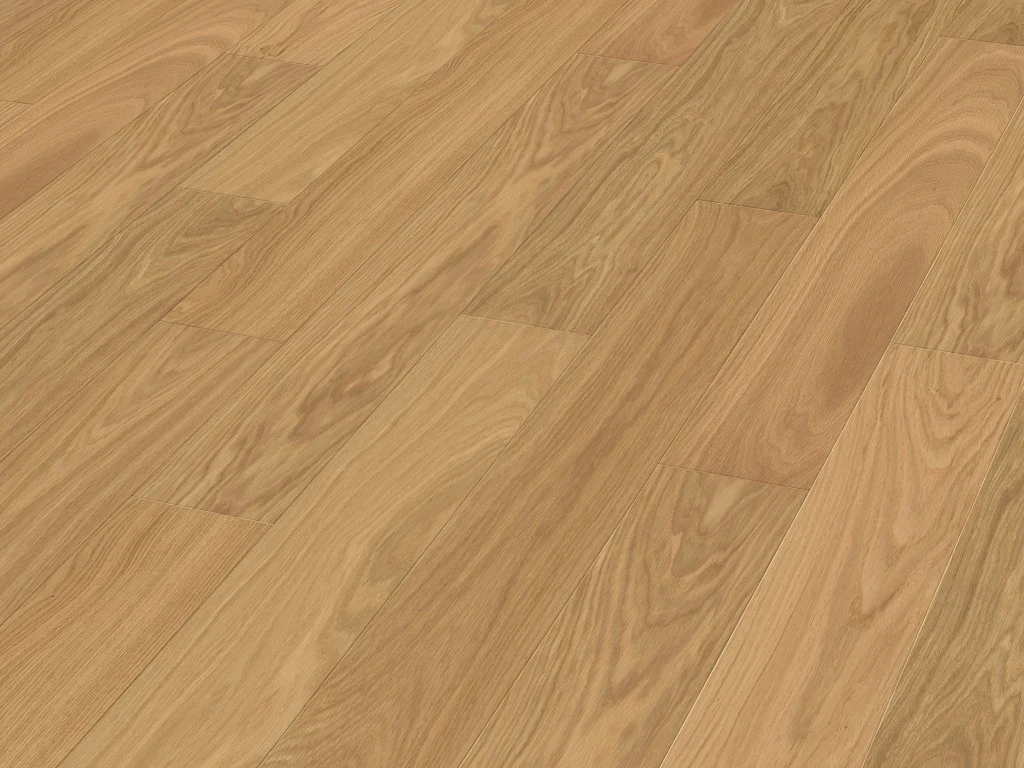 Optisch und auch haptisch gibt dieser Boden aus Eiche einiges her: die natürlich bis lebhafte, individuelle Maserung und der gediegene, matte Glanz dieses Hart- und Edelholzes verleihen Deinem Wohnraum einen Hauch von Luxus.
