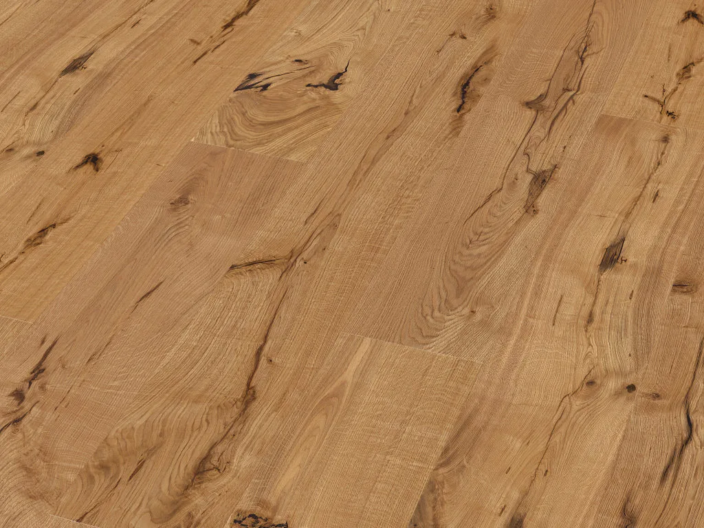 Die Optik des Bodens ist authentisch und abwechslungsreich – einfach zum Wohlfühlen. Der robuste Look des Eichenholzes wird durch seine technischen Vorteile bestätigt: es ist sehr hart, ökologisch, langlebig und zäh – ein Holz für die Ewigkeit.