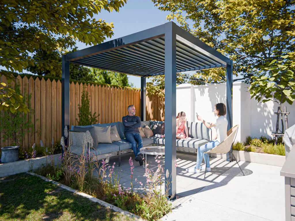 Die offene Pergola ist aus Aluminium gefertigt. Die Oberfläche ist pulverbeschichtet, was für extreme Widerstandsfähigkeit und eine lange Lebensdauer sorgt. Gleichzeitig schützt die Beschichtung vor Stößen, Kratzern, UV-Strahlung und Witterungsbedingungen. So kannst du deine Pergola zu jeder Jahreszeit nutzen – unabhängig vom Wetter.