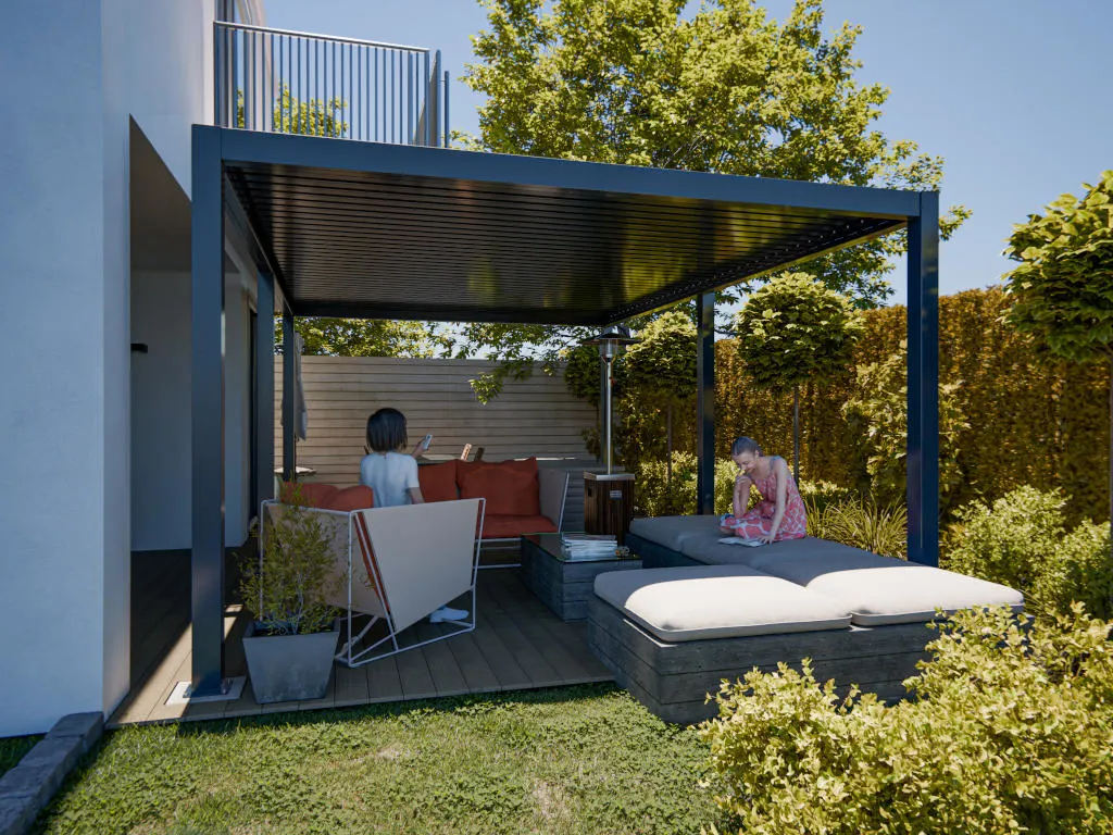Die offene Pergola ist aus Aluminium gefertigt. Die Oberfläche ist pulverbeschichtet, was für extreme Widerstandsfähigkeit und eine lange Lebensdauer sorgt. Gleichzeitig schützt die Beschichtung vor Stößen, Kratzern, UV-Strahlung und Witterungsbedingungen. So kannst du deine Pergola zu jeder Jahreszeit nutzen – unabhängig vom Wetter.